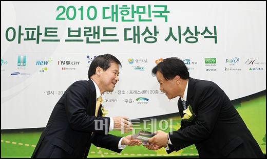 23일 오후 서울 태평로 한국프레스센터에서 열린 '2010 대한미국 아파트 브랜드 대상 시상식'서 SH공사 문완식 처장(사진 오른쪽)이 홍선근 머니투데이 대표로 부터 신뢰도 최우수상을 수상하고 있다. 독자들의 PICK! "이제 즐길것"...입상 실패 미 국대, 팬과 '스파 데이트' 인증 "계산적" 주사이모, 박나래 전 매니저 저격에…"뭐가 그리 당당?" "성소수자 지인과 불륜"…최동석, 박지윤 상간소송 각하에 항소 '성범죄' 사촌오빠 결혼, 부모는 쉬쉬..."예비 새언니에 알릴까요"