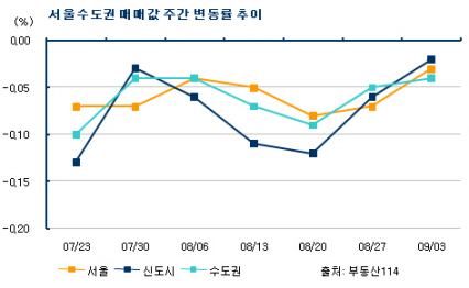 [시황-매매]서울(-0.03%) 신도시(-0.02%) 경기·인천(-0.04%) 낙폭 감소