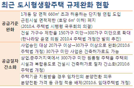 도시형생활주택은 그동안 비싼 땅값으로 인한 부지 확보의 어려움, 까다로운 대출조건, 사업규모가 작아 수익성이 낮다는 점이 문제점으로 지적돼왔다.