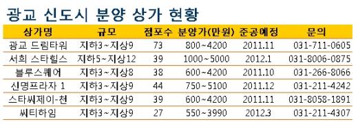 올 상가시장을 주도할 경기 광교신도시에서 신규물량이 쏟아진다.