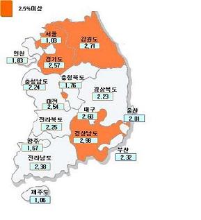 용도지역별로는 관리지역(2.60%)과 녹지지역(2.59%)의 표준지 가격이 상대적으로 높은 상승률을 보인 반면 상업지역(1.61%), 주거지역(1.87%) 등은 평균 변동률을 밑돌았다.