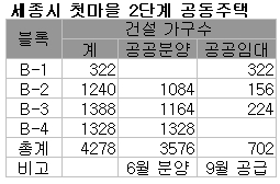 행복도시건설청 관계자는 "첫마을 2단계 시행사인 LH가 인·허가를 준비해 상반기 분양을 추진중"이라며 "분양승인이 나는 대로 LH와 함께 이전 공무원을 대상으로 설명회를 개최할 예정"이라고 말했다.