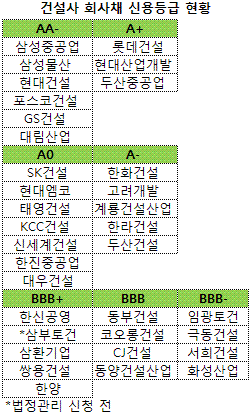 회사채시장도 비슷한 상황이다. 지난 3월 이후 BBB+급 이하 건설사의 회사채 발행실적은 쌍용건설(BBB+)과 동부건설(BBB) 등 단 2건, 800억원에 불과했다.