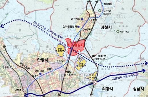 과천시를 지나 안양 인덕원 사거리로 넘어가는 8차선 도로 언덕을 중심으로 양쪽이 보금자리 대상 지역이다. 비닐하우스와 수목원이 몇몇 눈에 띄었을 뿐 인적이 드물었다. 지리적으론 과천과 인덕원의 중간쯤에 자리를 잡고 있다.