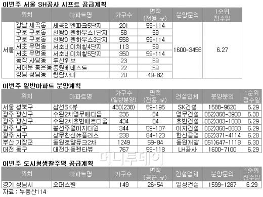 서울에선 민간아파트로는 성북구 삼선동에서 SK건설이 '삼선SK뷰' 430가구를 공급한다. 삼선1구역을 재건축한 단지로 전용 59~195㎡ 238가구가 일반분양된다. 지하철 4호선 한성대입구역을 이용할 수 있는 역세권단지며 3.3㎡당 분양가는 1300만~1400만원이다.
