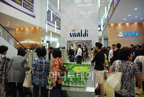 한라건설(3,205원 ▼30 -0.93%)은 폭우가 몰아친 지난 주말에도 경기 파주 교하신도시 '한라비발디 플러스' 아파트 모델하우스에 1만2000여명이 방문했다고 27일 밝혔다.