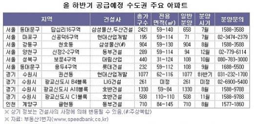 ◇서울 재개발 아파트 공급 잇따라=올 하반기 서울에선 대형건설사가 시공하는 재개발아파트가 줄줄이 쏟아진다.삼성물산건설부문과두산건설은 다음달 동대문구 전농·답십리뉴타운내 답십리16구역에서 전용면적 59∼140㎡ 총 2321가구의 매머드급 단지를 내놓는다. 이 중 일반분양분은 658가구. 지하철 2호선 신답역과 5호선 답십리역이 가까운 더블역세권 단지다.