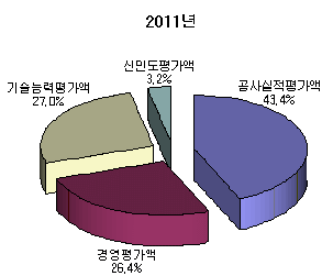 부문별 평가를 보면 공사실적 평가부문은 현대건설, 경영평가 부문은 삼성물산, 기술능력과 신인도 평가 부문은 현대건설이 각각 1위를 차지했다.