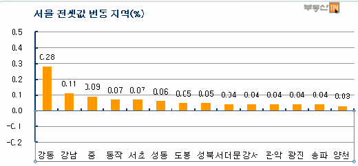 [시황-전세]강동(0.28%) 강남(0.11%) 등 오름폭 뚜렷