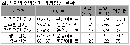 - 광주첨단2단계 입찰 경쟁률 187대1 달해