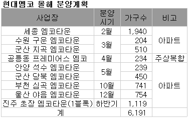 주택부문은 재건축·재개발사업, 지역주택조합 등 분양 리스크가 적고 자금 부담을 최소화할 수 있는 사업 위주로 수주영역을 확대한다는 방안이다. 분양은 2월 예정인 세종엠코타운 1940가구를 시작으로 총 6200가구를 계획하고 있다.
