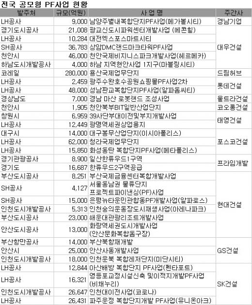 정부가 조정위원회를 구성하고 공모형 PF사업 정상화에 착수했지만 이미 많은 사업이 마무리 단계거나 상당부분 사업속도를 높여왔다.