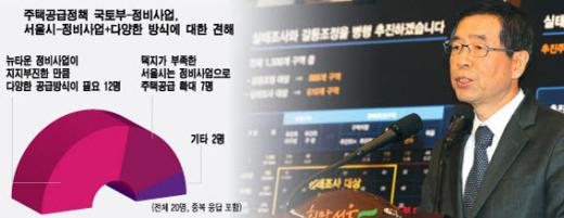 국토해양부와 서울시간 공방이 이어지는 주택공급 방식과 관련해서는 설문 참여 전문가 12명(60%)이 서울시의 주장대로 보금자리, 정비사업, 다세대·다가구 등 다양한 방식이 필요하다는 견해를 피력했다. 반면 택지가 부족한 서울의 특성상 정비사업을 통한 주택공급이 불가피하다는 국토부 주장에 대해선 7명(35%)이 찬성의견을 내놓았다.