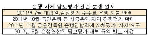 은행연합회가 마련 중인 '부동산 담보평가 내부규약'이 사실상 은행의 자체 감정평가를 허용하는 쪽으로 가닥이 잡혀 논란이 예상된다. 이 같은 내용이 확정될 경우 은행의 자체 담보평가를 자제토록 한 금융감독원의 지침과 정면으로 배치되기 때문이다.