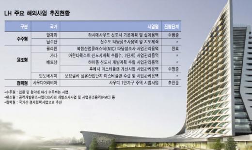 LH는 이어 알제리 하시메사우드 신도시 기본계획과 설계용역, 인도네시아 보요랄리 섬유산업단지 마스터플랜 수립과 사업관리용역 등 세계 각지에서 민관협력사업과 ODA 관리를 수행하고 있다.