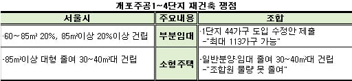 개포2~4단지는 60㎡ 이하 소형주택 비율 확대를 선택했다. 조합원 분양물량을 제외한 일반분양과 임대주택의 면적을 쪼개 30~40㎡대 초소형 주택을 늘리기로 한 것이다.