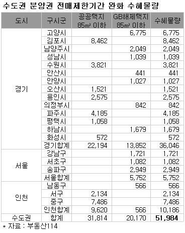 ◇전매제한 완화로 수도권 5만2000가구 수혜