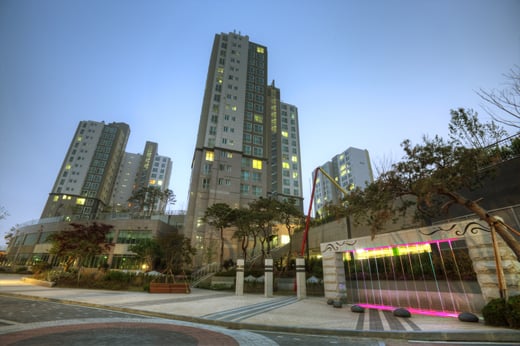 대표 사례가 '청라 호반베르디움'이다. 호반베르디움의 가장 큰 특징은 지상에 차가 없다는 것이다. 단지 전체를 지상 3m 높이 데크로 끌어올려 차가 다니지 않는 지상공간을 아이들이 마음놓고 거닐 수 있도록 했다.