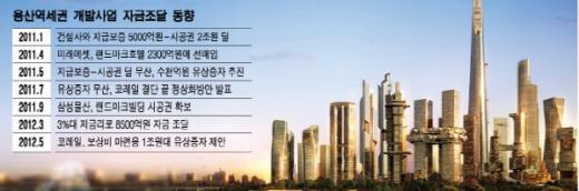 '자금 부족→대주주의 유상증자 제안→출자사 거부→대주주 결단 후 자금조달 개선.' 총 사업비 31조원 규모의 서울 용산역세권 개발사업이 자금조달에 여전히 어려움을 겪고 있다. 올들어서도 서부이촌동 보상비 마련을 위한 유상증자만 빼면 토지대금 부족을 이유로 유상증자를 추진한 지난해와 '판박이'다.