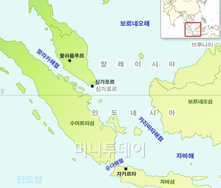 말라카·싱가포르 해협은 유럽·중동과 아시아를 잇는 주요 해운 수송로로 동남아시아 말레이반도와 인도네시아 수마트라섬 사이에 위치한 총길이 350㎞에 이르는 좁고 긴 수로다. 중동지역에서 우리나라로 수입되는 원유의 약 87%가 이 해협을 통해 수송된다.