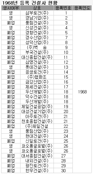 이렇게 승승장구하던 삼환기업이 지난달 법정관리에 들어갔다. 삼부토건은 지난해 6월 법정관리를 신청했다가 취소했지만 아직도 위태롭다. 대한건설협회 관계자는 "1960년대 경제개발 시기에 건설업 면허를 받은 30개 건설사 가운데 현재 정상기업은 현대건설(24호) 롯데건설(13호) 코오롱글로벌(코오롱건설 전신, 26호) 경남기업(2호) 등 4곳에 불과하다"고 말했다.