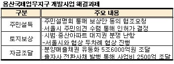 서울 용산국제업무지구 개발사업(조감도)이 법정보상 외 1조원대 보상 내용을 담은 주민보상안을 확정, 사업추진 발판을 마련했지만 아직 넘어야 할 고비가 아직 많다는 게 부동산업계의 지적이다.