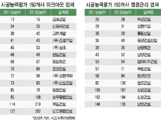 시공능력평가 51~100위 건설사 중 주택이 주력이었던 LIG건설과 동일토건도 지난해 각각 법정관리와 워크아웃 신청 직전 1건씩을, 한솔건설 역시 2010년 말 법정관리 신청 이전 3년 동안 4건의 최저가공사를 수주했다.