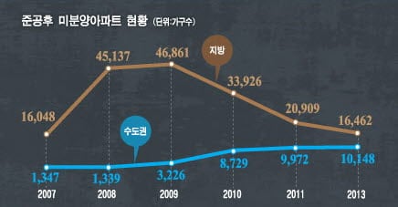 - 준공후 미분양 수도권 1만가구 … 건설사 재정 악화