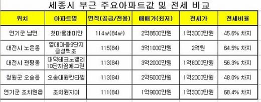 ◇세종시 아파트 전셋값 '폭등'…인근 지역까지 물건 '품귀'