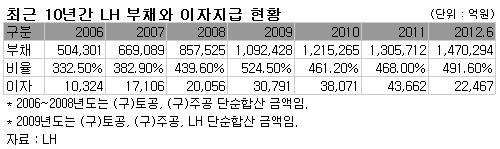 문병호 의원(민주통합당, 부평갑)은 이명박 정부 5년(2008~2012년 6월)동안 LH 부채가 80조이나 늘어났다며 정부의 획기적인 주거정책 전환과 강도 높은 사업조정이 없으면 LH가 파산할 가능성도 배제할 수 없다고 우려했다.