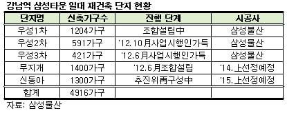 '우성 1, 2차 신분당선 강남역 상업 지구'와 '3차 소규모단지', '신동아·무지개 경부고속도로인접'이라는 각 단지의 특성을 뛰어넘어 대규모 단지로 함께 개발될 경우 시너지효과를 거둘 수 있다는 삼성물산측의 전략이 먹혀들었다는 평가다.
