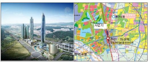 1조원 규모의 아산배방 복합단지개발 프로젝트가 사업 기간 연장과 규모 축소를 정부에 요구했다.