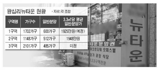 1구역 조합 관계자는 "입지 면에서 1구역이 왕십리뉴타운 중 가장 뛰어난 것으로 평가되지만 최근 2구역 미분양 사태에서 보듯 시장 상황이 녹록지 않은 게 문제"라며 "시공사 측과 협의를 통해 합리적인 대안을 찾아보고 있다"고 말했다.