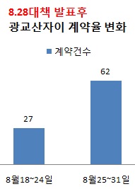 '계약조건보장제'는 할인분양 등 분양가나 분양조건이 바뀔 경우 기존 계약자에게도 같은 조건을 적용해주는 제도다. 결국 할인분양 등 집값이 떨어질 것을 우려해 망설이는 수요자들을 안심시킨 결과란 얘기다. 특히 8·28대책 발표 이후 계약건수가 곱절로 늘었다.