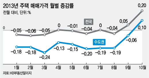 8·28대책 이후 집값이 다소 오르면서 거래도 조금씩 살아나는 모습을 보여왔다. KB부동산알리지의 '월별 매매가격동향'에 따르면 지난달 전국 주택매매가격은 전달보다 0.20% 뛰었고 같은 기간 수도권은 0.10% 올랐다. 특히 수도권은 25개월 만에 상승세로 전환했다.