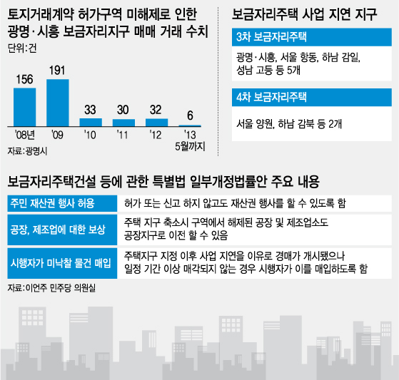 재산권 행사 허용 범위는 '보상가치를 상승시키지 않는 범위 내에서의 행위 제한 허용'으로 규정했다. 이번 개정안은 보금자리지구에만 한정돼 있다.