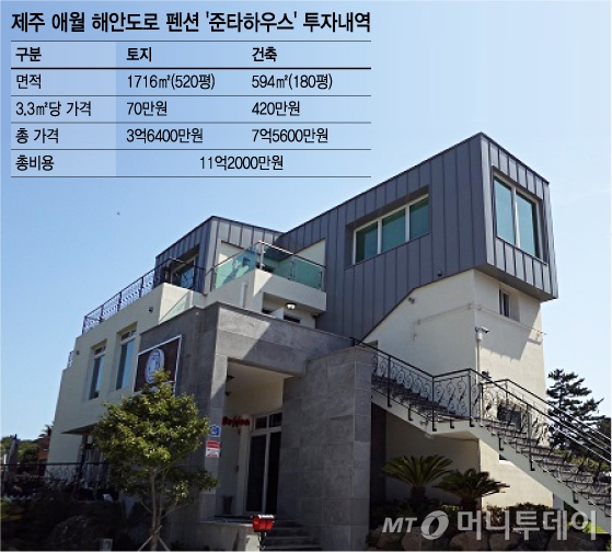 문제는 건축비였다. 대부분 자재를 육지에서 공수해야 하기 때문에 육지보다 건축비가 10~15% 정도 더 든다고 보면 틀리지 않다. 박씨의 경우 건축면적 600㎡에 3층 건물을 지었는데 건축면적 3.3㎡당 420만원꼴로 건축비만 7억6000만원 정도 들었다. 여기에 토지 매입가 3억6000만원을 합하면 11억2000만원 정도를 투자한 셈이다. 한마디로 전재산을 투자한 것.