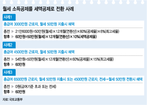 변창흠 세종대 행정학과 교수는 "월세에 대한 세액공제 전환은 저소득층을 직접 지원하는 방안이란 점에서 긍정적"이라며 "집주인들의 임대소득을 명확하게 파악하기 위해선 월세계약을 의무적으로 신고하도록 하는 게 중요하다"고 지적했다.
