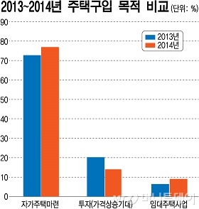 시세차익을 노린 부동산투자 심리가 위축되면서 주택구입 목적이 실거주에 초점이 맞춰지고 있다. 임대사업을 목적으로 한 주택수요는 지난해보다 소폭 늘었다.