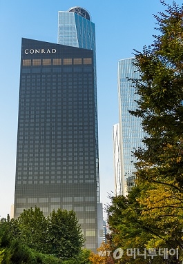 연면적 7만7878㎡, 38층 규모인 콘래드호텔은 이명박 전 대통령이 서울시장 재임기간 중 동북아금융 허브 전략의 일환으로 건설한 IFC 4개 건물 중 하나다. 당시 AIG는 서울시로부터 99년간 토지를 임대 받아 오피스타워 3개동과 호텔 1개동을 1조5140억원을 들여 완공했으며 이중 호텔 건설에는 약 3600억원이 투입됐다.