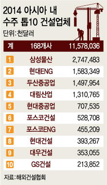 대림산업(68,600원 ▲2,400 +3.63%)은 필리핀 파그빌라오 석탄화력발전소 증설공사(3억3200만달러)와 싱가포르 톰슨라인 지하철 건설공사(3억 싱가포르달러, 2450억원)를 한꺼번에 수주했다. 대우건설도 톰슨라인에서 3억5200만달러 공사를 따냈다.