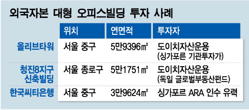 외국자본은 국내기관들이 투자를 기피하는 구분소유나 준공 전 오피스빌딩 매입에도 적극적이다. 대표적 물건이 중구 다동의 한국씨티은행 본점과 신세계건설이 종로구 청진8지구에 짓는 신축빌딩이다.