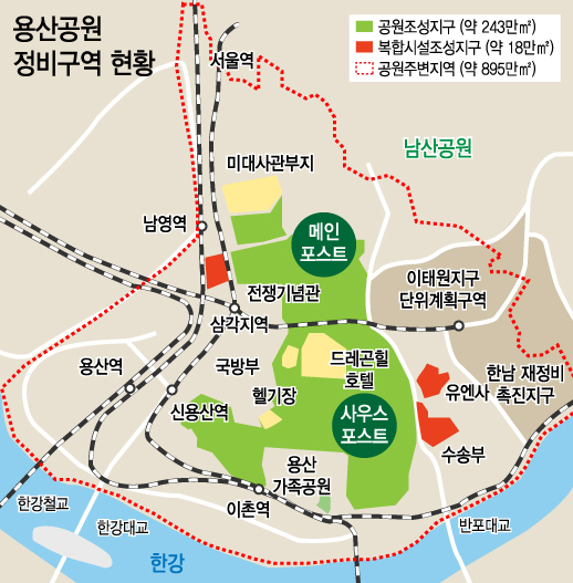 결국 정부가 지난달 18일 서울시 안을 수용한 내용을 담은 ‘7차 투자활성화대책’을 통해 용산공원 개발 가이드라인을 확정하면서 다시 가속도가 붙었다.
