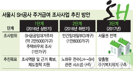이어 하반기에는 시내 민간임대주택 거주자(3개구 1만8000가구)로 조사범위를 확대한 뒤 2017년 서울 시내 전역을 대상으로 주택조사사업을 벌일 계획이다.