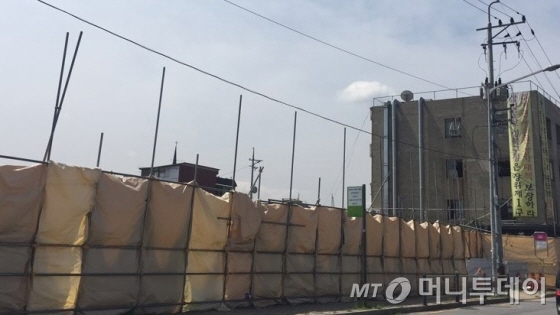 인접한 1구역은 이주가 사실상 완료된 상태다. 아파트 단지 건설 예정지 주위로 높게 울타리가 쳐져 있다. 상가들도 모두 문을 닫았다. 이곳에서 30년 동안 장사를 했다는 족발 가게의 이전 안내문이 눈길을 끈다. '주거·생존권을 보장해 달라'는 내용의 대형 현수막도 내걸려 있다. 이곳도 마찬가지로 2019년 상반기까지 29층 10개 동 939가구의 래미안 아파트가 들어선다.