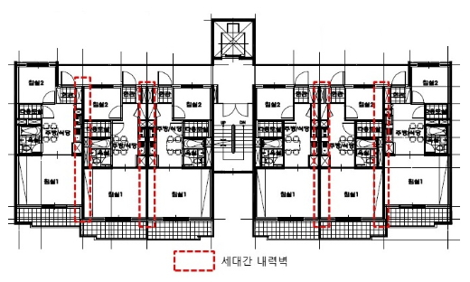 국토부 연구용역 결과에서도 세대 간 내력벽 철거에 따라 말뚝기초에 하중이 가중된다는 주장이 제기됐다. 국토부 관계자는 "그동안 세대간 내력벽 철거방안에 대해 연구용역 등을 통해 검토했지만 안전에 관련된 부분인 만큼 세밀한 검토 후 개정 여부를 결정하기로 했다"고 말했다.