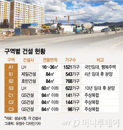 이 단지는 지하 3층~지상 14층 19개 동, 총 768가구로 조성되는데 모두 전용면적 84㎡다. 지난해 분양 당시 시공사 호반건설이 3.3㎡당 1903만원에 평균 분양가를 책정했으나 성남시가 1799만원으로 삭감했다. 그래도 확장비를 포함하면 분양가 6억원이 넘어 기존 공공택지 분양 단지와 견줘 비싼 편이다.