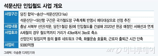 충청남도는 석문산단 인입철도 건설에 따른 생산유발 효과를 3조5000억원, 부가가치 창출효과는 1조2000억원으로 보고 있다. 고용창출 효과도 2만8000명에 달할 것이란 전망이다.
