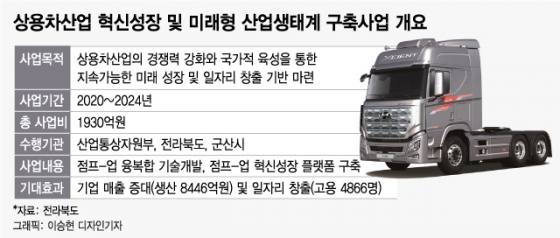 정부는 지난해 5월 한국GM 군산공장 폐쇄 이후 군산을 '산업위기대응특별지역'으로 지정한 뒤 상용차산업을 지역산업기반과 연계해 신성장 대체산업으로 육성키로 했다. 전북이 국내 상용차 94%를 생산하는 거점이며 상용차 완성·부품업체들이 군산과 익산, 완주를 중심으로 자리잡고 있다는 점이 고려됐다.