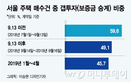올 들어 서울 주택매수건 중 보증금을 승계한 이른바 갭투자 비중은 45.7%로 떨어졌다. 지난해 9·13 부동산대책 이전 60%에 육박하던 갭투자 비중이 불과 반년도 안돼 급격히 꺾인 것. 국토부는 “현재 주택시장은 급매가 해소돼도 추격 매수세가 붙지 않고 관망하는 ‘계단형 하락’ 국면의 평평한 계단 위에 있다”고 진단했다.